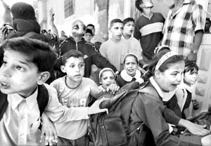 Decenas de niños palestinos huyen en una populosa zona de Gaza, donde el ejército de Tel Aviv reanudó ayer su ofensiva con misiles para eliminar al fundador del grupo Hamas, que resultó herido. La agrupación advirtió que el premier israelí, Ariel Sharon, lo "pagará caro" FOTO REUTERS