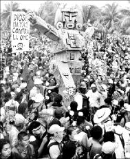 maya de la lluvia, de cuatro metros de altura, enojado "por la privatización