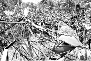 después del homenaje del derrumbe de la valla. "No vamos a dejar