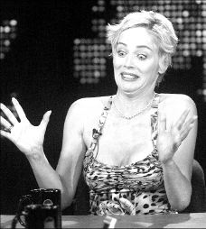 LOS MIEDOS DE SHARON  La actriz Sharon Stone gesticula y describe el miedo que sintió cuando pasó un día en cama con una boa constrictor, durante la filmación de su nueva cinta Cold Creek Manor. Stone hizo la explicación durante el programa televisivo Larry King Live, donde además comentó sobre su nueva vida de soltera, así como el acercamiento que tuvo con la muerte cuando se le detectó una hemorragia cerebral, hace dos años FOTO REUTERS