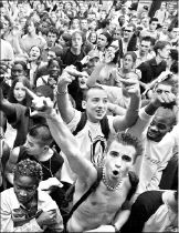 Algunos de los más de 300 mil jóvenes que se dieron cita ayer durante el quinto Desfile Tecno Dance, en París FOTO AFP
