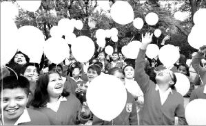 Internacional de la Paz, estudiantes de primaria lanzaron al
