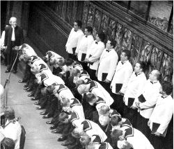 en una pantalla, acompañando a los Niños Cantores de Viena;