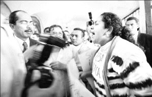 PROTESTA EN EL RECINTO LEGISLATIVO MORELENSE  Integrantes del Frente Cívico pro Defensa del Casino de la Selva gritan consignas durante el Informe de labores del gobernador de Morelos, Sergio Estrada Cajigal FOTO JOSE ALEMAN/ SIGNUM