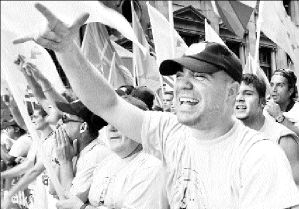 Miles de estibadores de Europa protestan contra los planes de abrir al mercado los servicios de los puertos del continente FOTO AFP