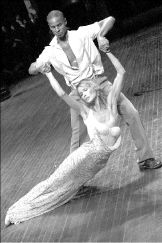 MODA Y BAILE  Una pareja de modelos baila a la vez que presenta las creaciones pertenecientes a la colección primavera/verano 2004 del diseñador británico Alexander McQueen, durante una pasarela en París FOTO REUTERS
