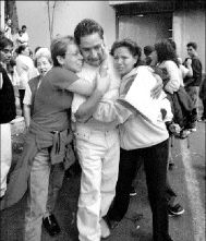 su madre, quien lo esperaba desde horas antes en las afueras del lugar,