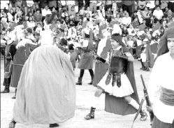 con sus trajes algo así como romanos, presuntamente árabes,