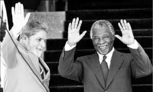 CONTRA EL PROTECCIONISMO DE LOS PAISES INDUSTRIALIZADOS  Al culminar una gira por Sudáfrica, Luiz Inacio Lula da Silva, presidente de Brasil, criticó el proteccionismo de las naciones ricas y que éstas sometan a los países pobres a sus reglas sobre comercio. El mandatario anfitrión, Thabo Mbeki, coincidió con esas declaraciones FOTO REUTERS
