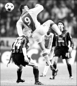 El Milán derrotó 1-0 al Ajax de Amsterdam y clasificó a octavos de final, en la defensa de su título en el certamen. El gol fue anotado por el ucraniano Andriy Shevchenko a los 51 y enmudeció a los 50 mil espectadores en la arena de Amsterdam. En segundo lugar del bloque H están Ajax y Celta de Vigo; este último apenas igualó 1-1 con Brujas.