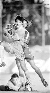 y luego al desviar con reflejos felinos un peligroso cabezazo de Cardozo.