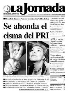 Emilio Chuayffet saluda en la sede nacional del tricolor tras su elección como nuevo coordinador de la fracción con el voto de 118 de los 222 diputados priístas. Mientras, Elba Esther Gordillo intentó en San Lázaro dar una imagen de trabajo arduo como si no la hubiesen destituido FOTOS JOSE ANTONIO LOPEZ