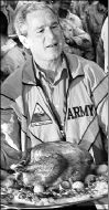 La imagen pudo haber salido del recetario de Martha Stewart del Día de Acción de Gracias. Un exquisito y dorado pavo acompañado de una artística guarnición de uvas. Desafortunadamente, el ave que llevaba en brazos un radiante presidente George W. Bush en su sorpresiva visita a los soldados en Bagdad, la semana pasada, era únicamente para verse, no para comerse.