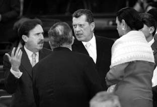 Los priístas Emilio Gamboa Patrón, Enrique Jackson y Dulce María Sauri discuten durante la sesión de clausura del periodo ordinario de sesiones en el Senado de la República FOTO MARCO PELAEZ