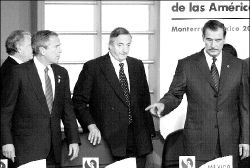 En este encuentro de presidentes, que se convoca con una agenda tan ambigua como ésta -desarrollo económico con equidad, gobernabilidad y desarrollo social-, los gobiernos no terminaban anoche de negociar una declaración conjunta, mientras en los salones privados de los distintos hoteles que albergan a los ilustres visitantes de Monterrey se desplegaba el verdadero ejercicio de este encuentro: maratónicas reuniones bilaterales que sirvieron a los mandatarios para amarrar o desamarrar acuerdos que luego afloraban a la superficie -es decir, al conocimiento de los medios de comunicación- como una lluvia de temas diversos: migración, combate a la corrupción, reducción de costas de las remesas y la fuerte presión de Washington para acelerar el proceso del Area de Libre Comercio de las Américas (ALCA).