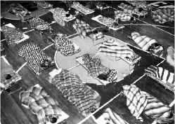 que dormitaban en hileras de catres. La variedad de personas, faenas, orígenes,