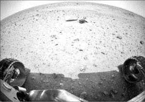 "Tenemos seis ruedas en el polvo" marciano, dijo Charles Elachi, director del Jet Propulsion Laboratory de la NASA en Pasadena, California, sede del centro de control de la misión Mars Exploration Rover, minutos después del descenso del Spirit.