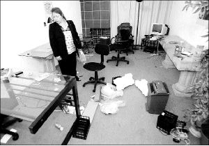 CATEO  Aspecto de la oficina del presunto defraudador inmobiliario Marco Antonio Romo Alcántara, ubicada en la calle de Nebraska 25-101, colonia Nápoles, tras la revisión efectuada por agentes de la Procuraduría General de Justicia del Distrito Federal. La acción se llevó a cabo anoche con base en la orden otorgada por el juez 41 penal con sede en el Reclusorio Norte FOTO JOSE CARLO GONZALEZ