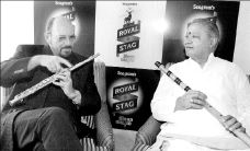 FLAUTAS EN BOMBAY  El flautista de la banda británica de rock Jethro Tull, Ian Anderson, y su homólogo de la India, Pandit Hariprasad Chaurasia, al anunciar los conciertos que ambos ofrecerán este fin de semana en Bombay FOTO REUTERS