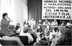 Trabajadores activos, jubilados y pensionados del Instituto Mexicano del Seguro Social (IMSS) reunidos en asamblea rechazaron cualquier modificación a su Régimen de Jubilaciones y Pensiones (RJP), "patrimonio de los empleados actuales y futuros", cuyos recursos fueron utilizados por las autoridades de la institución para la construcción de hospitales y centros médicos, así como para fondear el Seguro de Enfermedades y Maternidad (SEM). Antes de cualquier reforma "nos deben devolver ese dinero", señalaron.