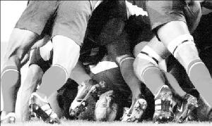 Imagen de Tim Clayton, de The Sydney Morning Herald, la cual muestra a Yannick Bru debajo de una montaña de jugadores durante la Copa Mundial de Rugby, efectuada en la ciudad australiana. La gráfica ganó en el World Press Photo 2003 FOTO REUTTERS