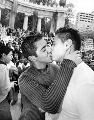 DIA DEL AMOR  Por cuarto año consecutivo, parejas homosexuales del moviento lésbico gay acudieron al Hemiciclo a Juárez para realizar matrimonios simbólicos FOTO FRANCISCO OLVERA