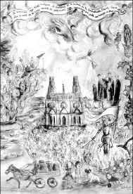 en mi pintura todo eso, integré el relato antiguo con la actualidad