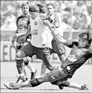 América acortó 2-1, al 41, en un preciso balonazo de Cuauhtémoc a Reinaldo Navia, quien bombeó el balón al arquero Hugo Hernández.