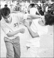Dos habitantes de Zitlala, Guerrero, se enfrentan a golpes, durante el Carnaval que comenzó el martes en la entidad FOTO OSCAR ALVARADO