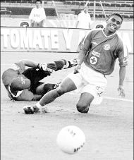 Los jugadores de La Máquina exhibieron ayer en un semivacío estadio Azul su endeble espíritu, su gran nerviosismo y tuvieron un arranque desastroso, pues al minuto seis recibieron el primer gol en contra, cuando Aarón Galindo le regresó el balón al portero Oscar Pérez, éste se resbaló y no pudo impedir que Sergio Santana la punteara hacia su meta para imponer el 1-0. De esa forma los tuzos acabaron con un ayuno de goles de 386 minutos.