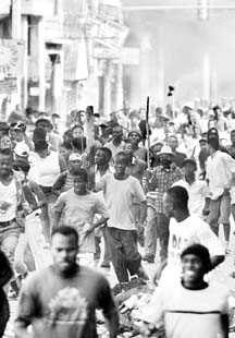 Cientos de haitianos atiborraron las calles de Puerto Príncipe al conocer que Jean Bertrand Aristide había abandonado el país FOTO AFP