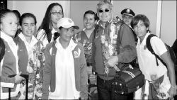 Porras, pancartas con letreros de bienvenida, felicitaciones, banderas de México y arreglos florales provocaron las sonrisas de las tricolores y de su director técnico, Leonardo Cuéllar. Sin duda la estrella, y la más solicitada por los fotógrafos, fue Maribel Domínguez, máxima goleadora de la justa, con nueve dianas.