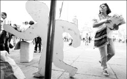 Indígenas de Oaxaca pegaron carteles en las paredes del Congreso, en los cuales demandaban la presentación de sus esposos, quienes presuntamente fueron desaparecidos por "grupos paramilitares" del PRD en el municipio de Tlaxiaco, del ejido San Pedro Yosotate.