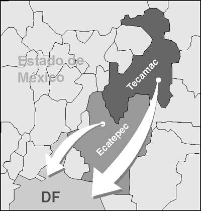 arriba al estado de México proveniente del Distrito Federal se asienta