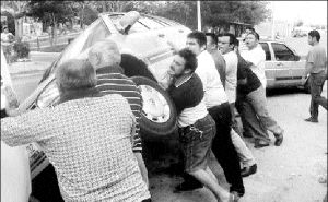 AGRESION A TAXISTAS YUCATECOS  Taxistas de la ciudad oriental de Valladolid ųa unos 250 kilómetros de Méridaų, afiliados al Frente Unico de Trabajadores del Volante (FUTV), sindicato afín al PRI, agredieron a cuatro choferes independientes de esa comunidad y volcaron sus unidades en represalia por invadir rutas que supuestamente son exclusivas de los primeros FOTO CLAUDIA GONZALEZ