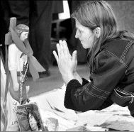 para alentar a su dios, que está internado debido a un grave