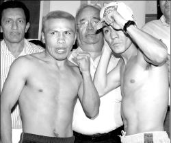 LA REVANCHA  El sinaloense Jorge Arce (derecha) es favorito contra el campechano Melchor Cob, en combate por el cinturón minimosca del Consejo Mundial de Boxeo (CMB), anunciado para este sábado en el palenque de gallos de Tuxtla Gutiérrez foto NOTIMEX