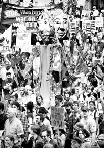 Miles de personas realizaron en Washington un cacerolazo argentino para repudiar al fondo monetario y el Banco Mundial FOTO AFP