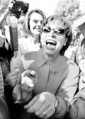 Rosario Robles y atrás de ella la esposa de Carlos Ahumada, Cecilia Gurza, al llegar al Reclusorio Norte para visitar al dueño de Quart. La ex perredista fue abucheada por familiares de internos que le exigían respetar la fila para entrar FOTO ALFREDO DOMINGUEZ