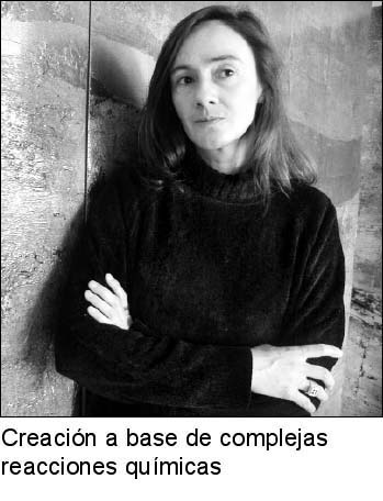 La superficie pictórica, considera la artista, es una extensión de su piel, de su organismo, pero también es una metáfora de la superficie terrestre, donde es posible observar canales subterráneos y estratos geológicos.