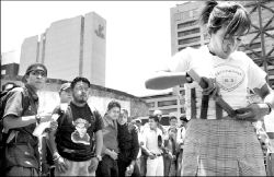 performance en la glorieta de Insurgentes