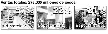creciente concentración en la venta de supermercado, ropa y