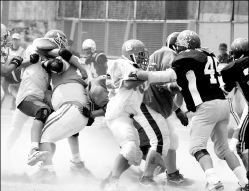 de cal que marcaban las yardas, los jugadores penitenciarios anotaron tres