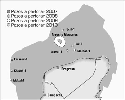 Alacranes, así como de la costa. En 2009 se realizarían perforaciones