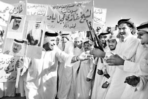 Paul Bremer, el administrador estadunidense en el país asiático, fue humillado cuando su candidato favorito, Adnan al-Pachachi, rechazó su invitación para encabezar el gobierno iraquí. La decisión obligó a Washington a optar por el jeque Ghazi al-Yawar, quien ha criticado abiertamente la ocupación de su país. En la imagen, celebración de simpatizantes del nuevo mandatario en Mosul; tal era la euforia, que las fuerzas invasoras les ordenaron que dejaran de hacer disparos al aire. En tanto, 36 personas murieron ayer en Bagdad por el estallido de dos coches bombas FOTO REUTERS