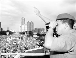 hoy en una multitudinaria marcha de respaldo al presidente Hugo Chávez,