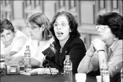 Ferrer descalificó la postura externada por Sauerbrey, cuando "la comunidad internacional acaba de ver lo que han hecho las tropas de Estados Unidos con las mujeres detenidas en Irak, a las que han mancillado". La cubana pidió a la presidencia de la conferencia que su presentación sea incluida en las actas oficiales.