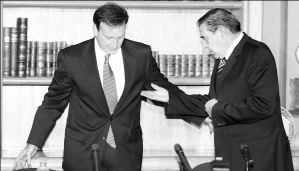 El embajador de Estados Unidos, Tony Garza, y el secretario de Agricultura, Javier Usabiaga, tras la firma ayer de un convenio en materia agrícola FOTO CRISTINA RODRIGUEZ