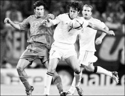 Aunque la necesidad era grande, España intentó con timidez; Carvalho sacó una volea de Luque y Juanito envió otro tiro al larguero. Scolari sustituyó a Figo por Petit, mientras España se hundía lentamente.