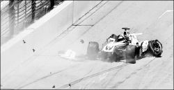 llegada, al terminar la décima vuelta, y se estrelló contra